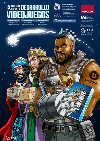 Cartel "Curso de Videojuegos 2015". Universidad UCLM.